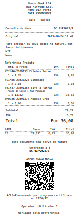 A Consulta de Mesa é um tipo de documento utilizado na área da restauração que permite a apresentar ao cliente um comprovativo da transmissão de bens ou da prestação de serviços.