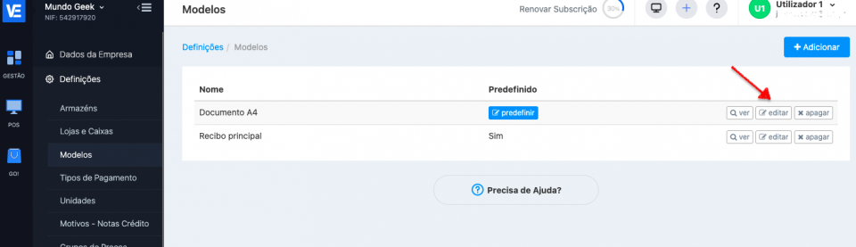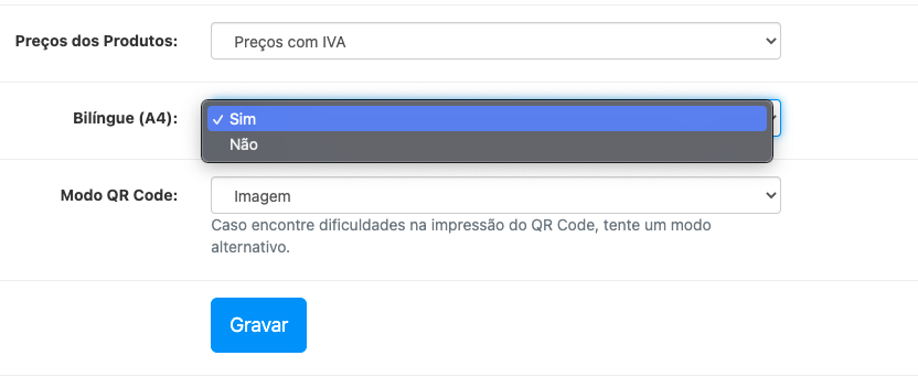 Quando emitir novas faturas, já serão afetadas por esta alteração, aparecendo então os campos traduzidos em inglês.