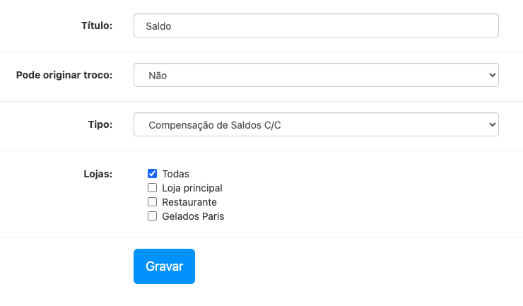 O nome do pagamento é dado por si, pode por exemplo ser Saldo. Relativamente ao Tipo, terá de escolher o pagamento por conta corrente.