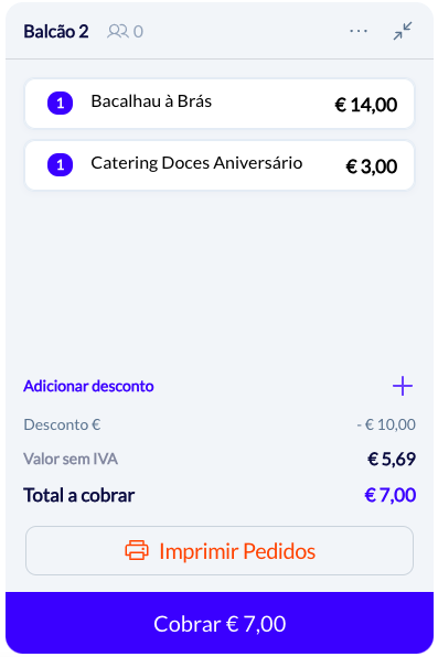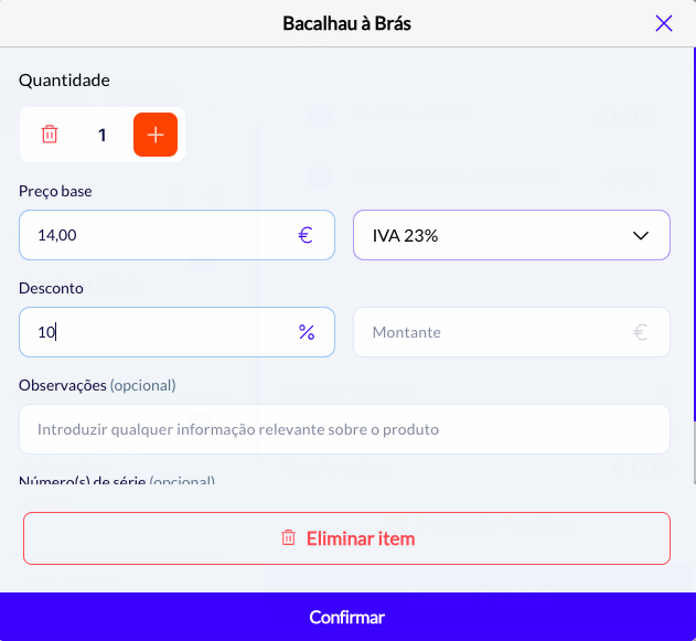 Após definir o desconto, clique em confirmar para que o desconto seja aplicado. No ecrã do POS, poderá ver o preço antigo riscado e o novo preço já com o desconto incluído.