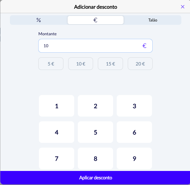 No POS, pode aplicar descontos aos artigos de um forma individual, ou a todos os artigos de uma só vez. O desconto em si pode ser percentual ou monetário.