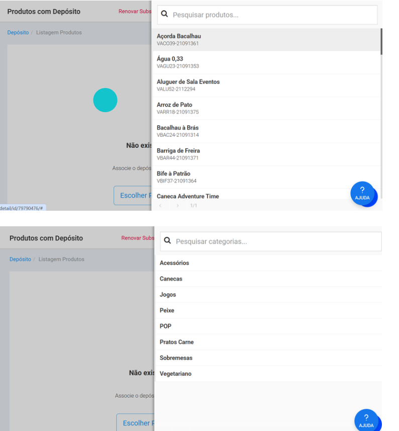 Clicando em Escolher Produtos, pode indicar os produtos nos quais vai adicionar depósito.