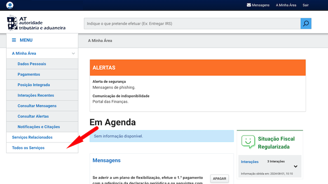 Depois de aceder ao Portal das Finanças e de fazer login com o NIF e senha de acesso (ou com a Chave Móvel Digital), no meu lateral à esquerda, clique em "Todos os Serviços". Procure a opção "ATividade" e selecione "Submeter declarações-início, alteração e cessação".