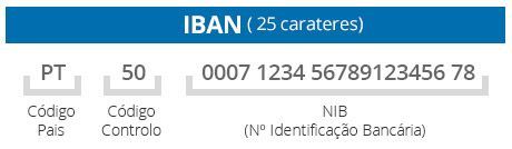 Os dois primeiros caracteres correspondem ao país de domiciliação da conta. O terceiro e quarto caracteres são de controlo e servem para validação do código do país. Os restantes dígitos correspondem à estrutura de identificação de contas (anterior NIB).