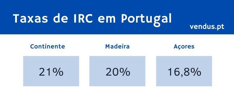 As taxas do Imposto sobre o Rendimento das pessoas Coletivas variam de acordo com a localização da empresa e com o valor do rendimento obtido. Os Açores e a Ilha da Madeira têm leis autónomas e naturalmente diferentes de Portugal Continental. Para mais informações sobre o IRC consulte a página do Portal das Finanças.